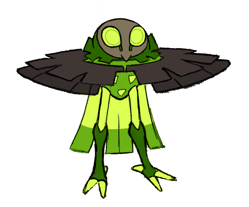 With so few slots remaining for new designs, we never intended to move forward on the “baby” idea Harlow had sketched beside Albrax. But when we got to pondering what the last 3 or 4 designs in the game would be, Alexis did a month-long reassessment of every Beastie we had, trying to identify all the gaps that could still be filled. And one thing she uncovered was that there weren’t any unique birds in the early areas of Mythwood. Another thing she uncovered was that we had an overabundance of “round” Beastie designs, and not enough pointy/spiky ones.