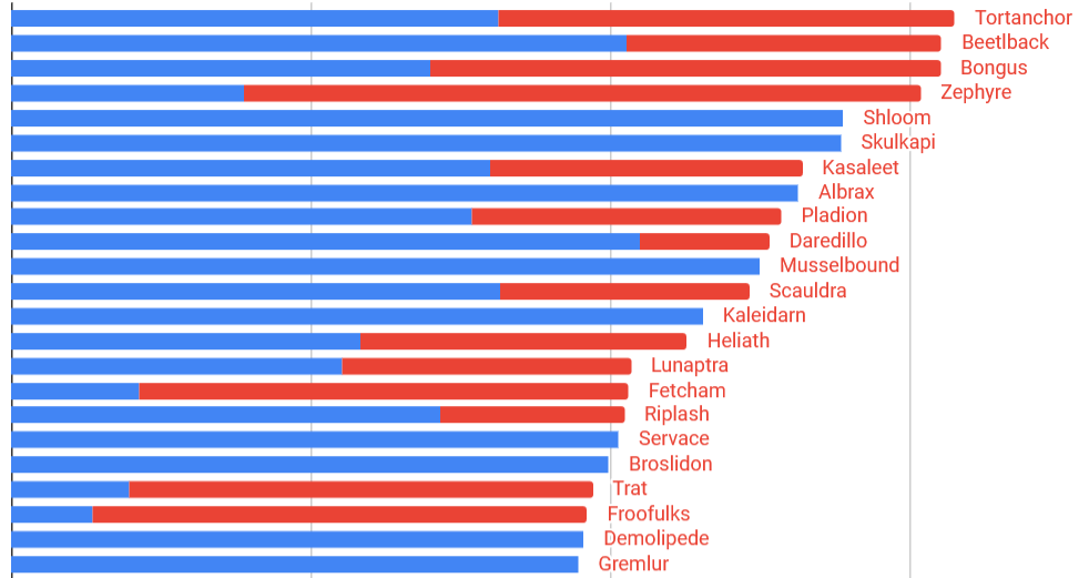 I want to give a shout-out to some of our more active community members, who keenly noticed that their specific team compositions were missing from previous Bash stats. Thanks to them, we uncovered underlying issues with how our data was collected—it turns out, we were missing data from about half our players! As such these stats are much more representative than we’ve ever had before… a huge gift for us on the balancing team (phew!) and for our community who love to look at all the juicy numbers. We’re still working on recovering data from previous events; when we do, we’d love to share updated historic data on those with you!