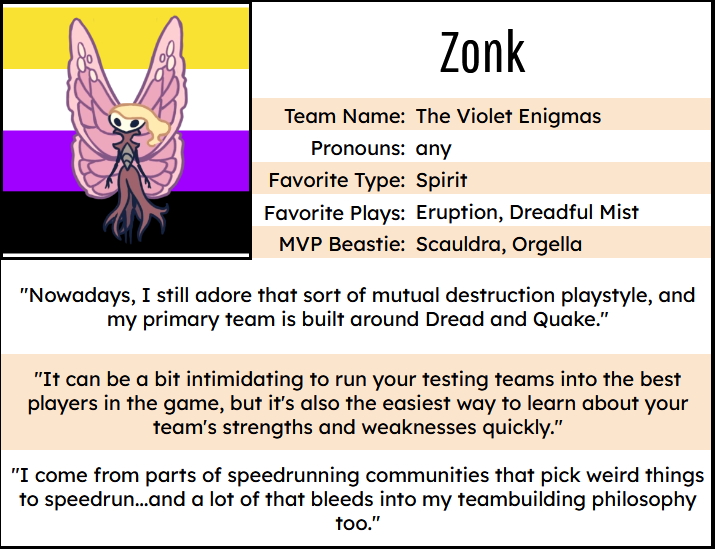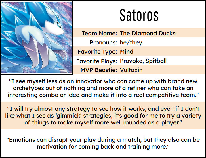 Congratulations to these coaches! Many of these players are active in our community Discord, often swapping strategies and team ideas. In fact, kim of the Happy Hearts (this Bash’s #2 player!) recently took it upon herself to start interviewing active community members to learn more about their angle on the game and teambuilding. Here’s a little bit of insight from some of the above coaches…