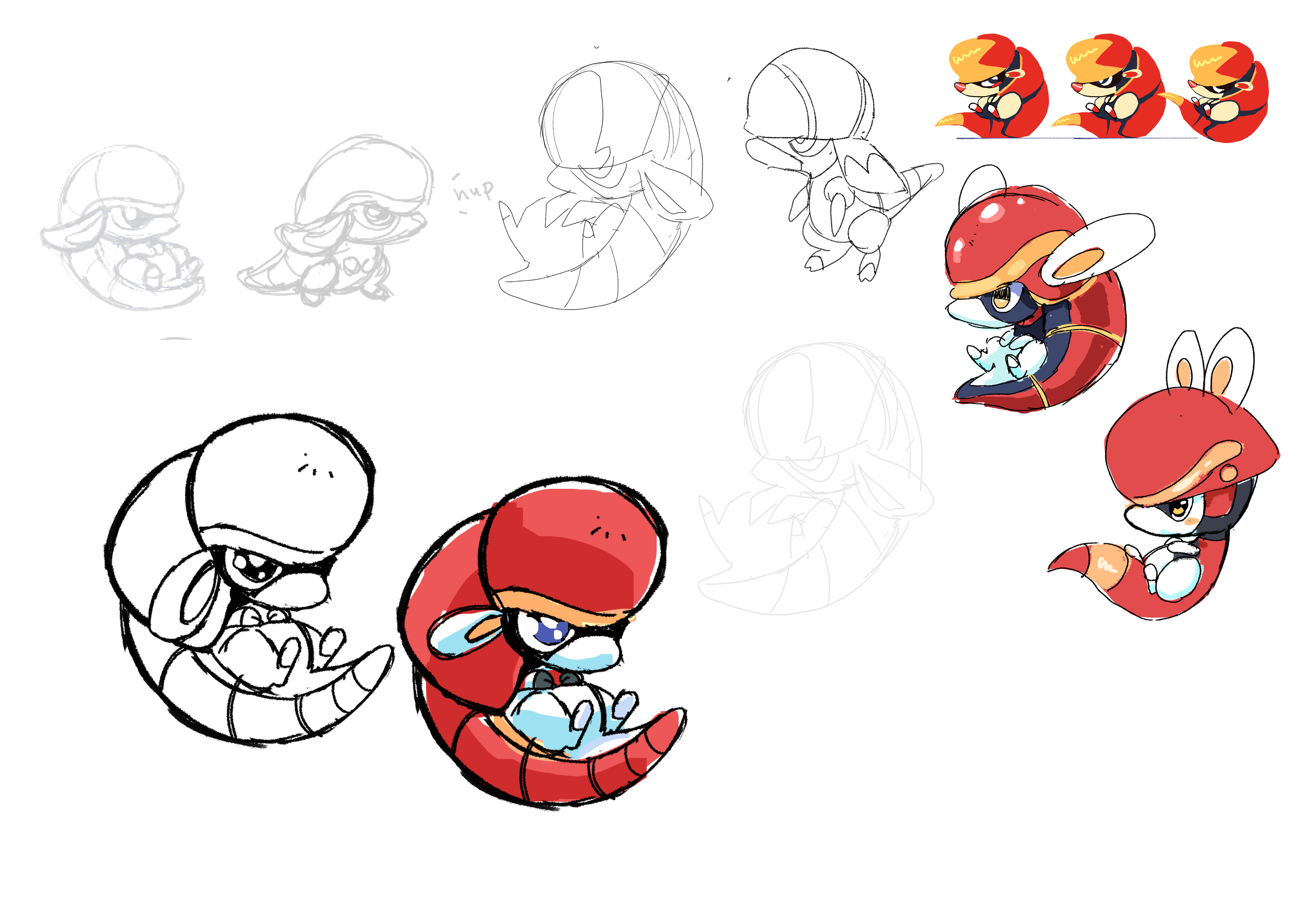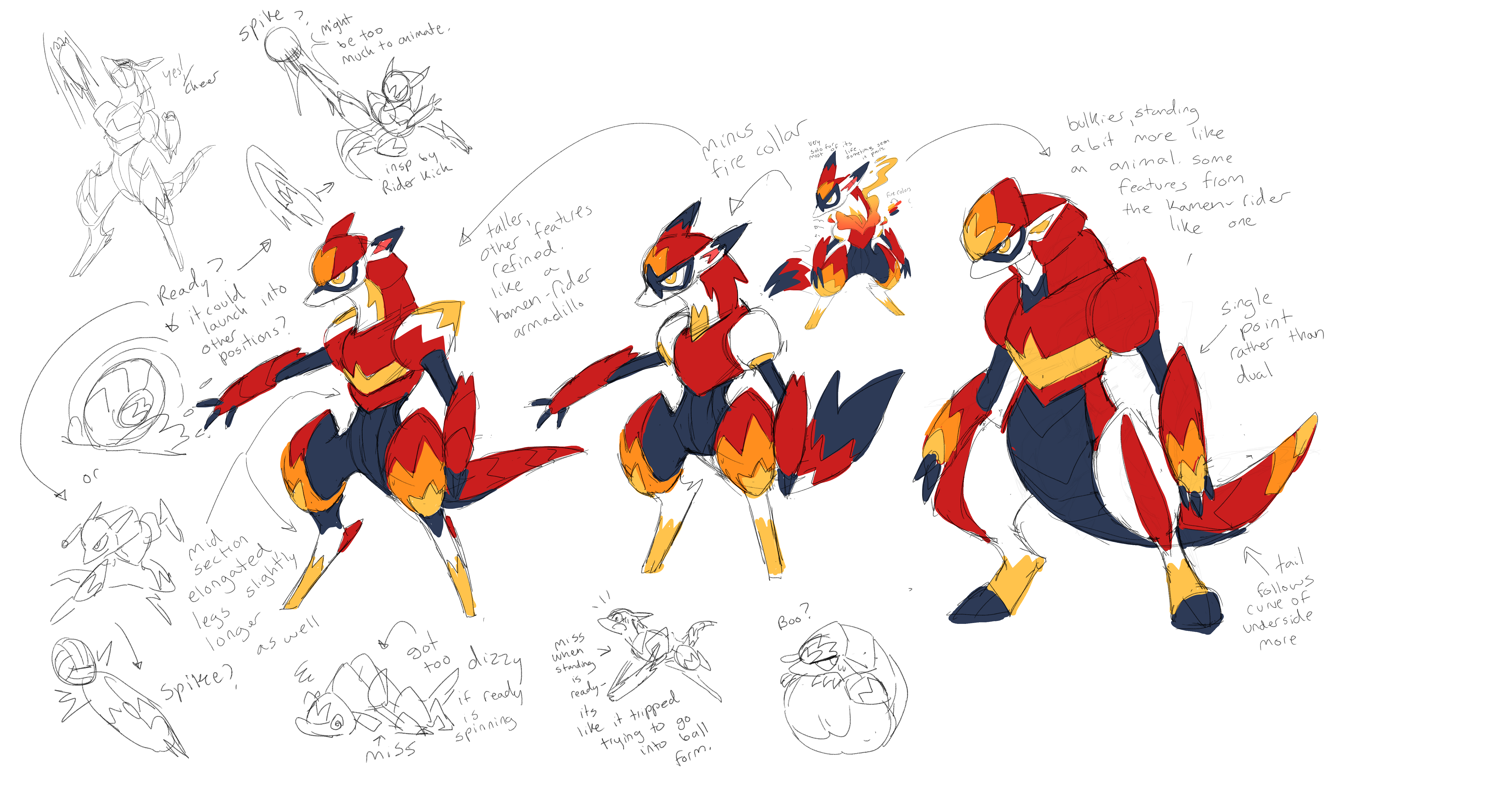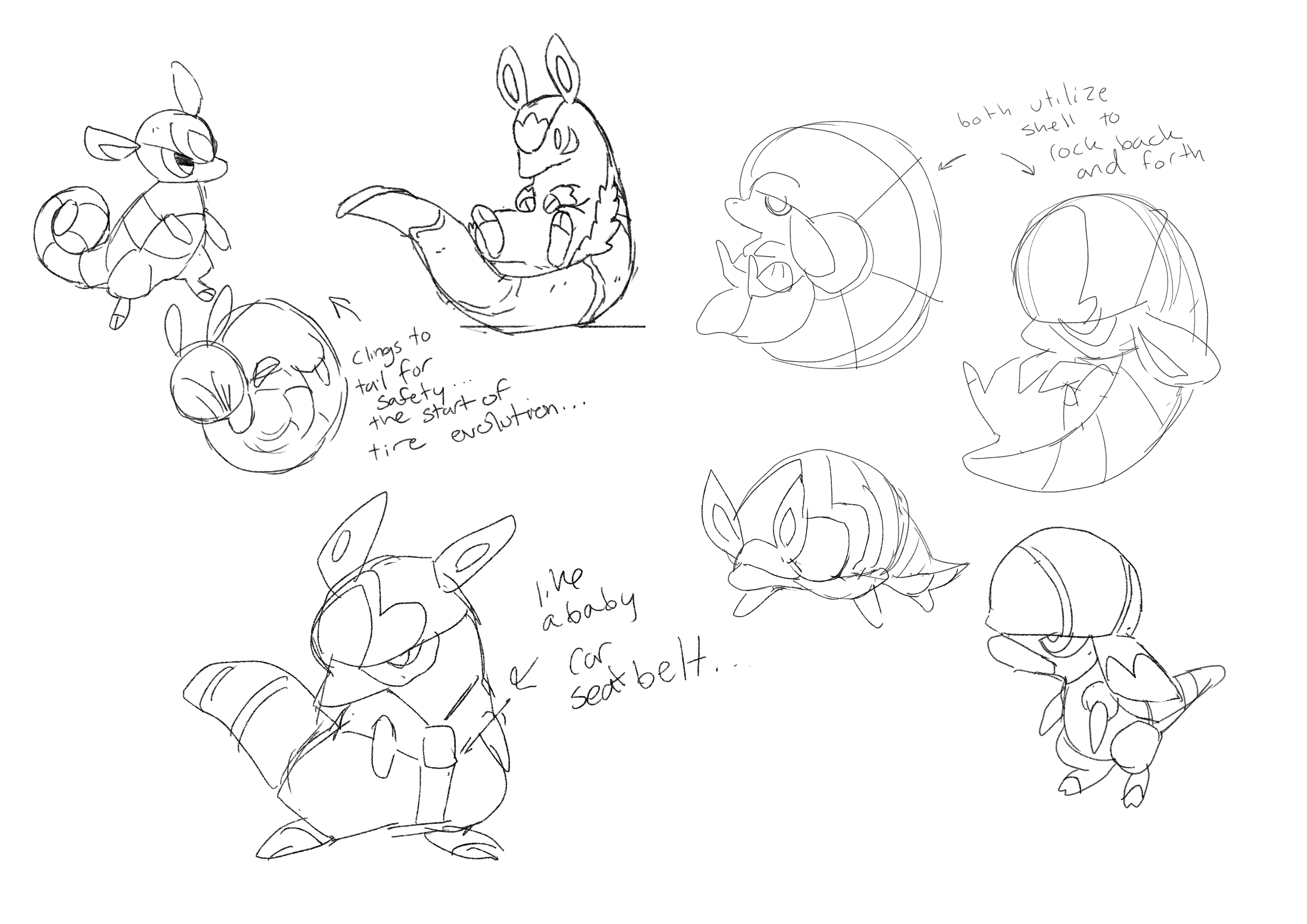 Although we knew we could also do an amazing immature form for Daredillo, we didn’t start exploring it until nearly a year later - there were just too many other Beasties to figure out in the meantime. But eventually, Iris did these explorations all testing different shapes and stances. They all looked cute, but like before, they were all so cute, they left us stuck on which direction to pursue.